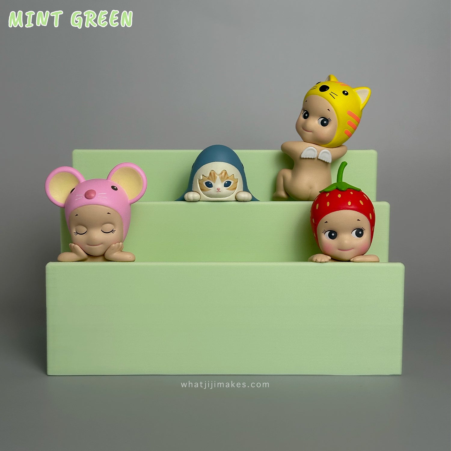 - A display stand with a custom-designed seat that holds Sonny Angel Hippers perfectly in place, ensuring that they stay in place without the need to use the adhesive!